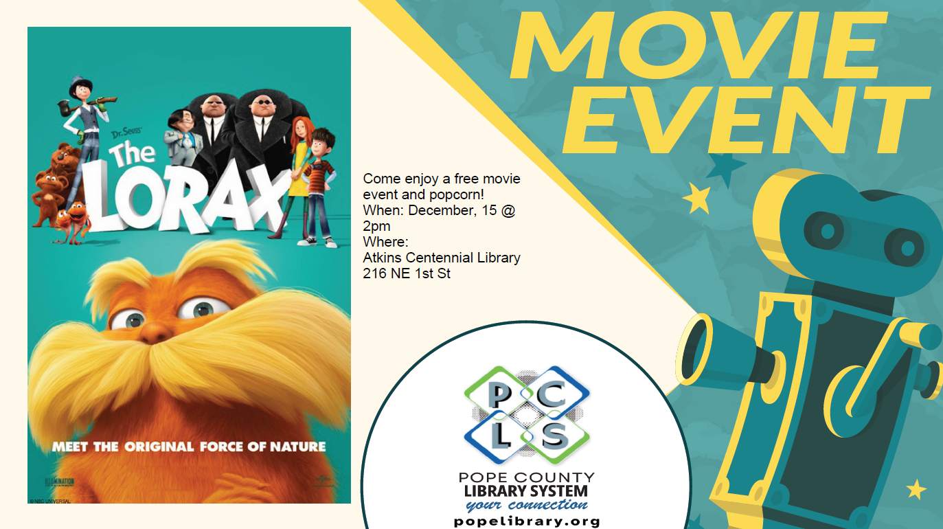 A special guest, the Lorax, will be visiting us during a special story time. Hang around after story time for a showing of the the movie, The Lorax.